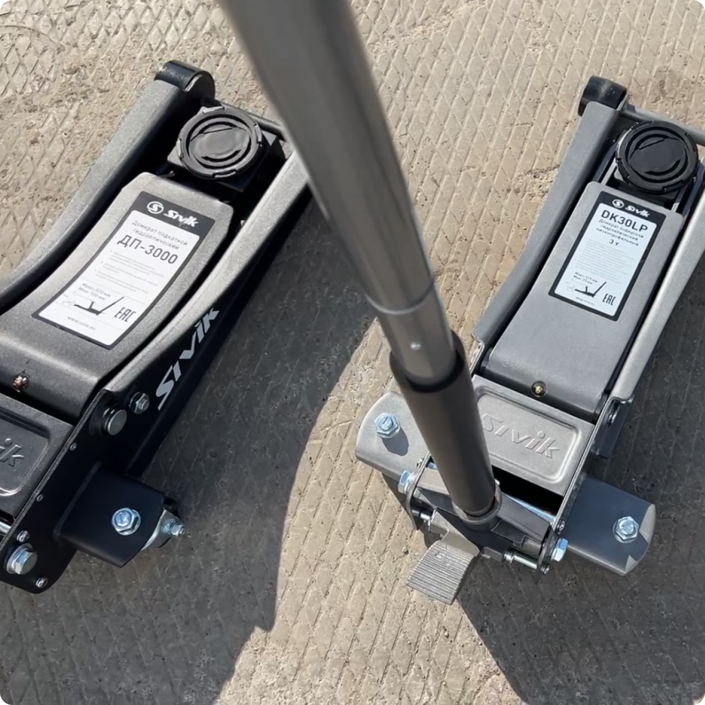 ДП-3000. Домкрат премиум-класса, сочетающий в себе максимальную надежность, удобство и производительность. Минимальная высота подхвата составляет 100 мм, а высота подъема – 533 мм. Грузоподъемность равна 3 тоннам при собственном весе в 43 кг. Быстрый подъем обеспечивается двухплунжерной гидравлической системой, а предохранительный клапан защищает оборудование от перегрузки. Для удобства эксплуатации предусмотрены вращающаяся Т-образная рукоятка с рифленой тактильной частью, комфортная педаль для выбора свободного хода, встроенный лоток для хранения мелких деталей. Также ДП-3000 оснащается защитными накладками из EVA-пены и тавотницами для смазывания подвижных деталей во время эксплуатации.
