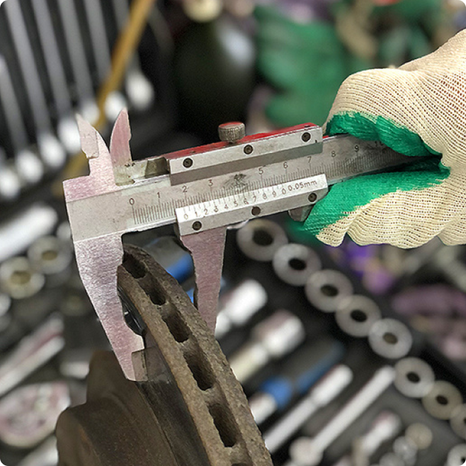 Чтобы оценить износ детали, применяется высокоточный штангенциркуль. Замеры осуществляются на 12–15 участках по всей поверхности ротора. Достаточно сильное биение тормозного диска ощущается при отклонении его толщины в соседних четвертях всего на 0,03–0,05 мм. Однако, даже если водитель не чувствует вибраций на руле, это не значит, что диск полностью исправен. Например, кольцевая выработка из-за воздействия колодок может не приводить к возникновению биений, но снижает площадь трения и, соответственно, эффективность торможения.