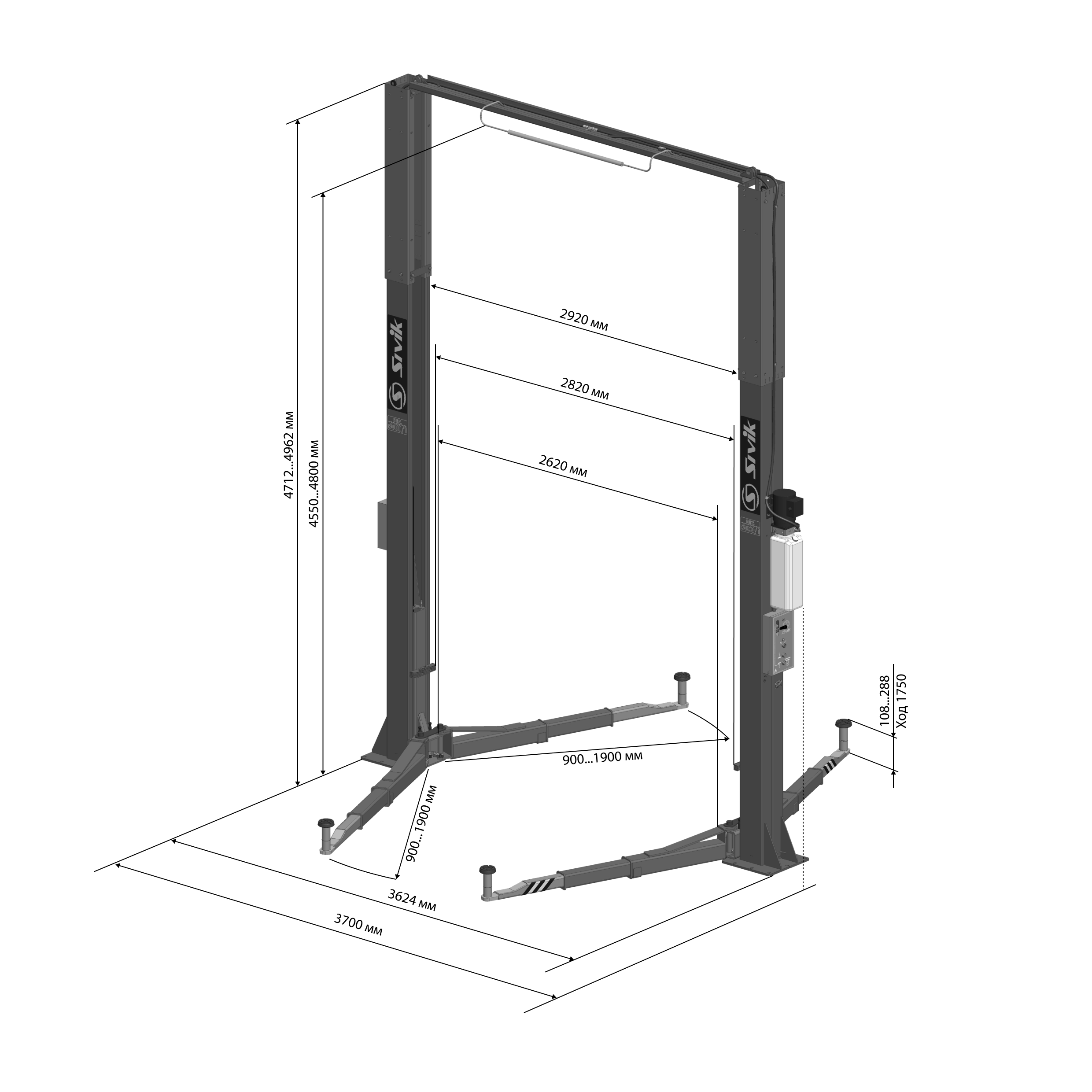 картинка Двухстоечный электрогидравлический подъемник ПГА-5000/1 (высокая версия для LCV) Sivik