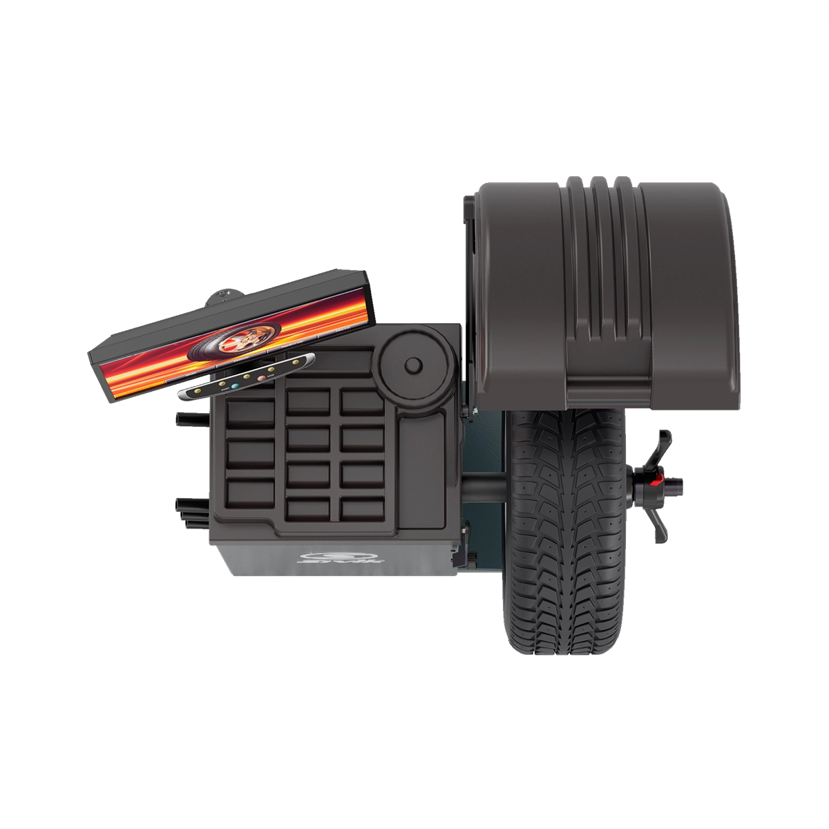 - Станок автоматически доворачивает колесо к месту установки груза и удерживает благодаря технологии S-Drive.